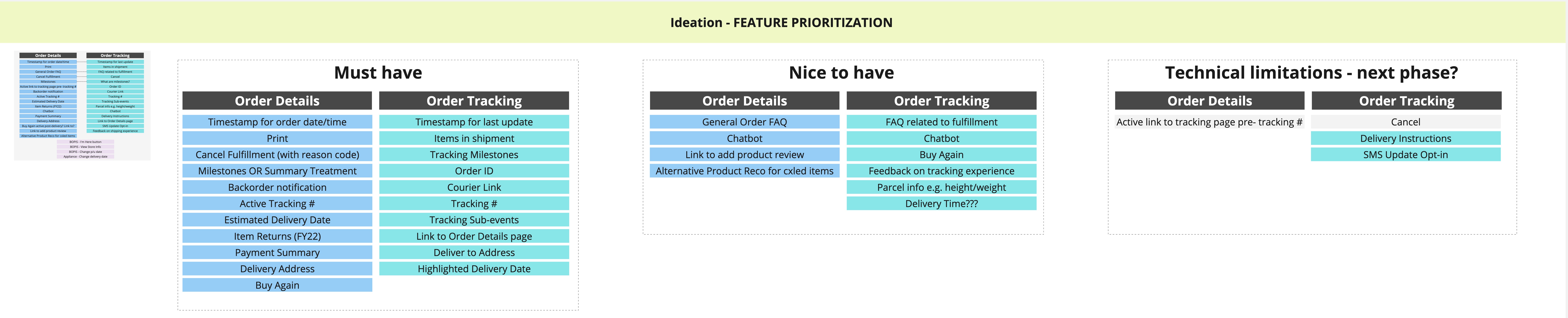 As part of the order tracking redesign, we conducted a milestone brainstorming exercise to define meaningful stages in the order journey. The goal was to identify milestones that accurately reflected backend events while remaining clear and understandable to users.