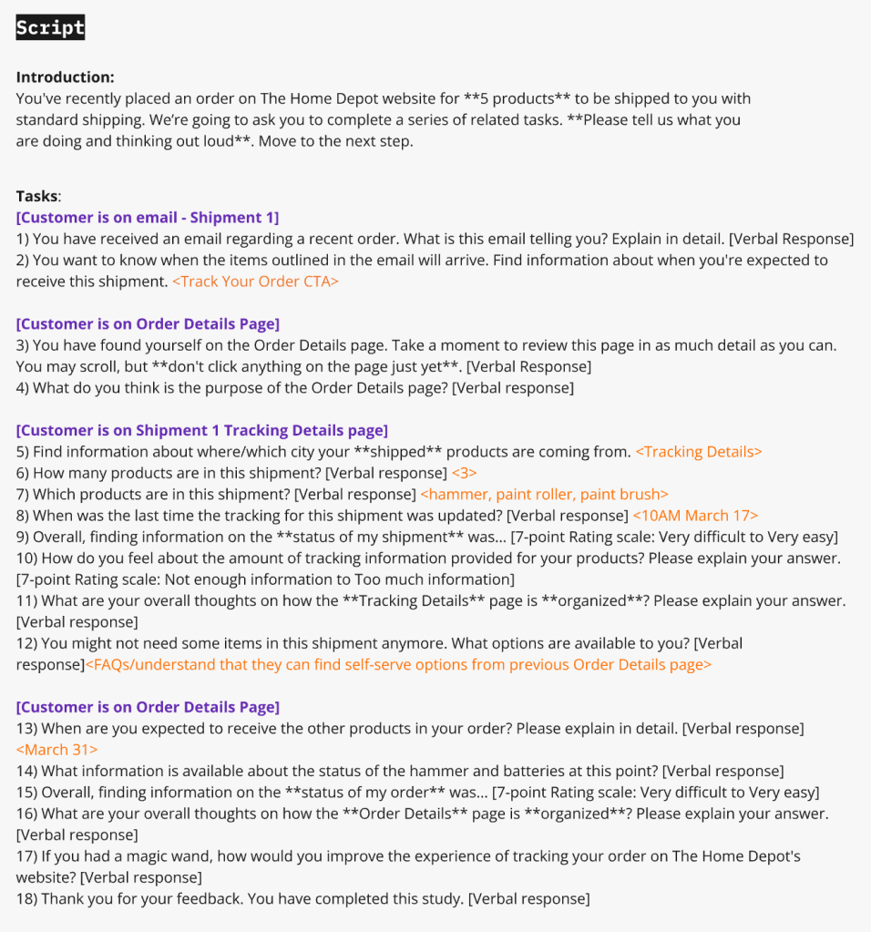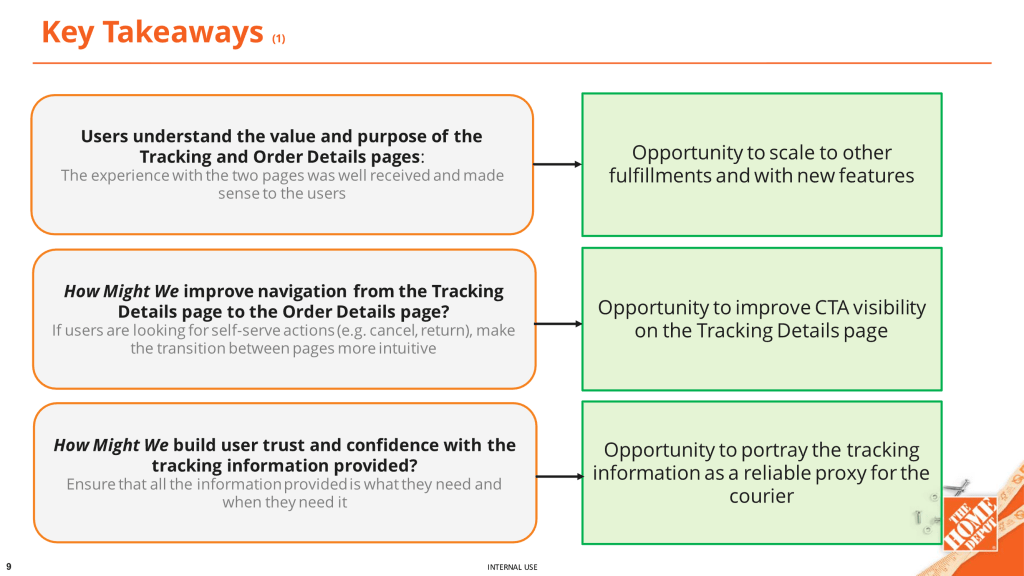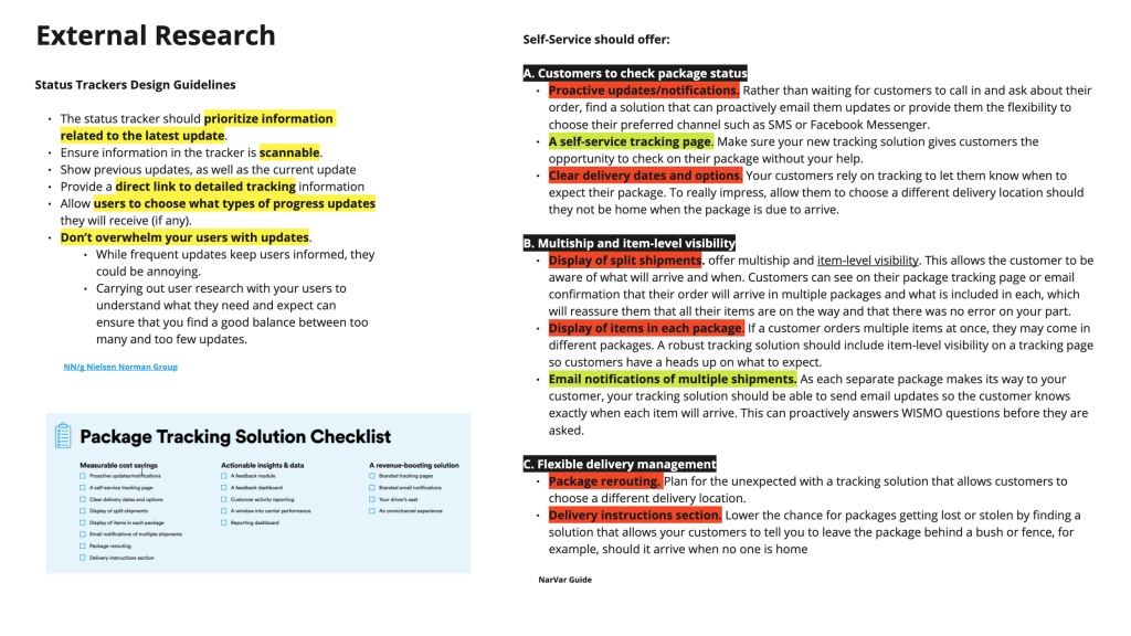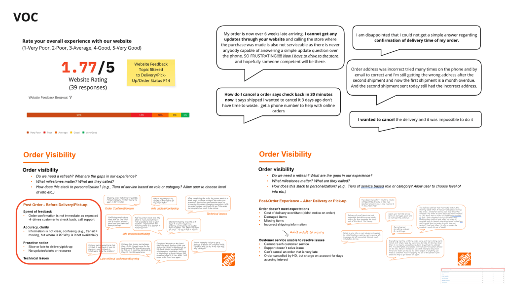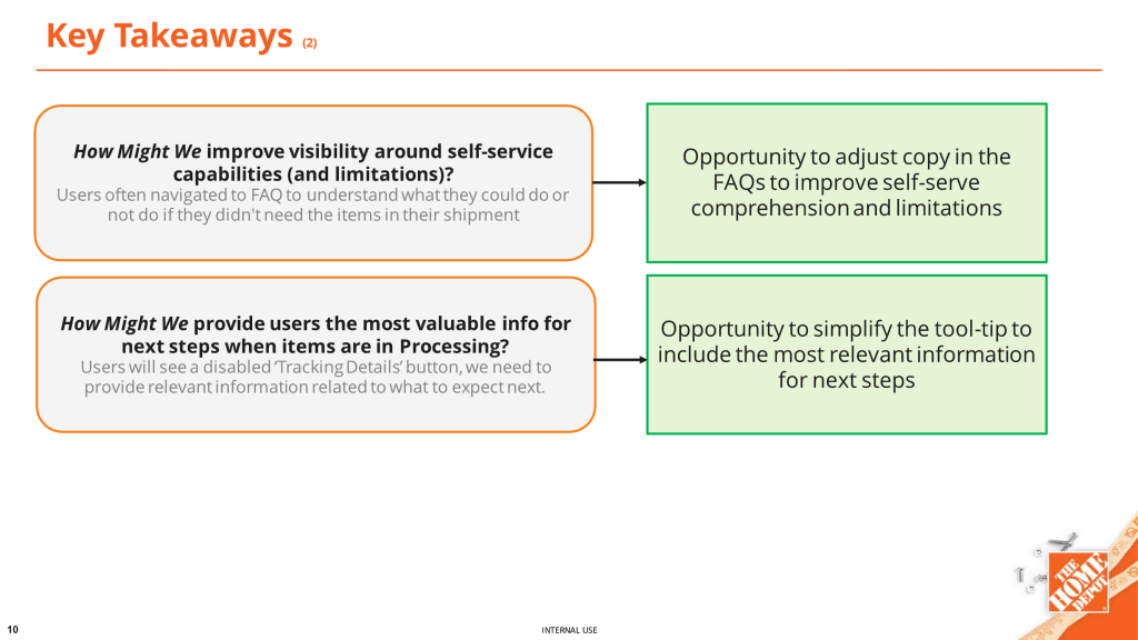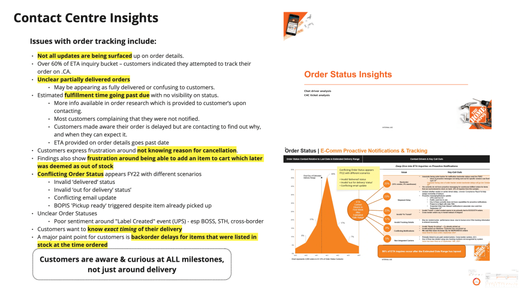 Conducted user interviews with existing customers to understand their preferences and needs on order details page related to tracking and self serve options.