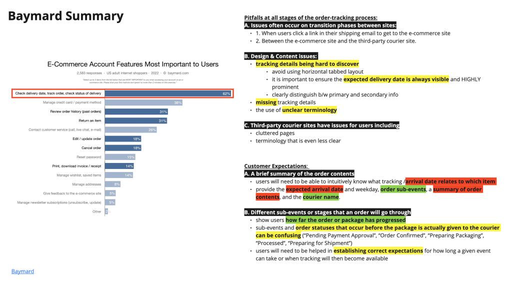 Conducted research for the best practices related to post purchase experience on baymard, nngroup and other websites.