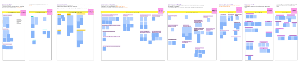 After my team and I reviewed the unmoderated tests, I facilitated an affinity mapping session to understand how users understood our experience on a task-by-task basis.