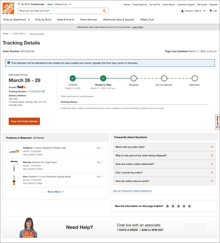 Customers could receive orders through various fulfillment options; ship to home, store pickup, express delivery, or appliance delivery. Creating a cohesive and consistent Order Details experience while accommodating the unique requirements of each fulfillment type was a core design challenge.ers was a significant challenge.